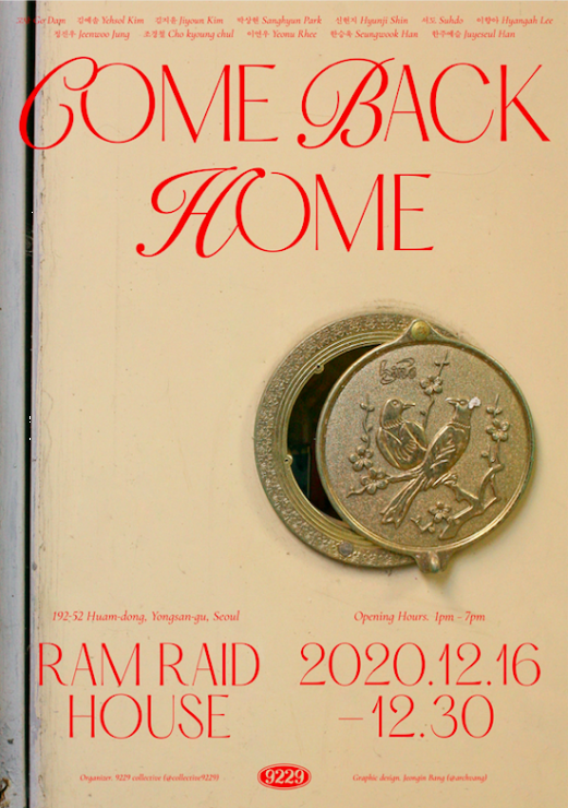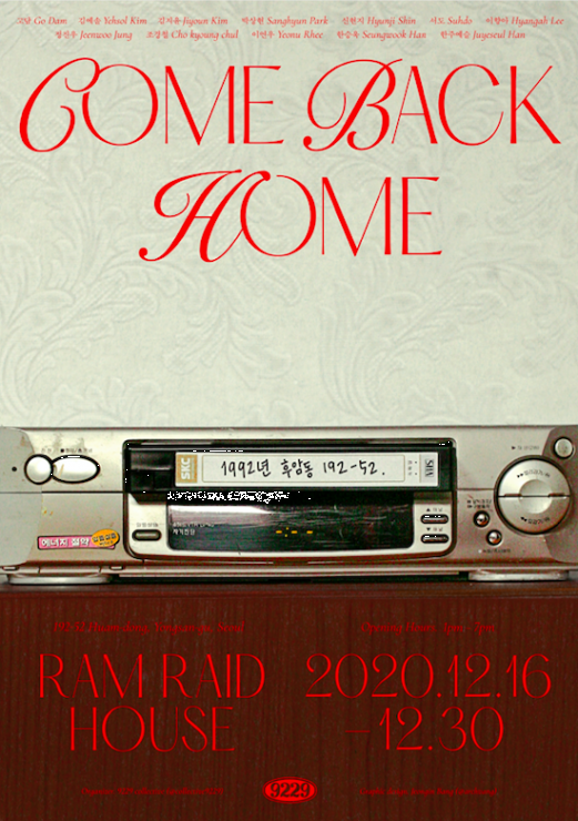 «COME BACK HOME»은 올해 29살이 된 92년생 아티스트들이 모인 Collective 9229의 첫 전시이다. 같은 시기에 유년기를 보낸 작가들의 가장 개인적인 기억들을 모아, 현시점에서 우리들의 지나간 세대를 바라보는 작업을 진행한다. 예술가 각자가 가진 유년기의 ‘푼크툼’(찌르다, Punctum)적 요소들을 모아 지금까지 우리의 삶을 구성했던 거시적, 미시적 풍경들을 되짚어본다. 각각의 풍경들이 모였을 때 어떤 공동의 풍경이 될 수 있을지, 질문을 던지고 함께 실험한다.