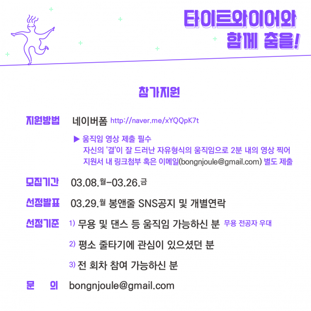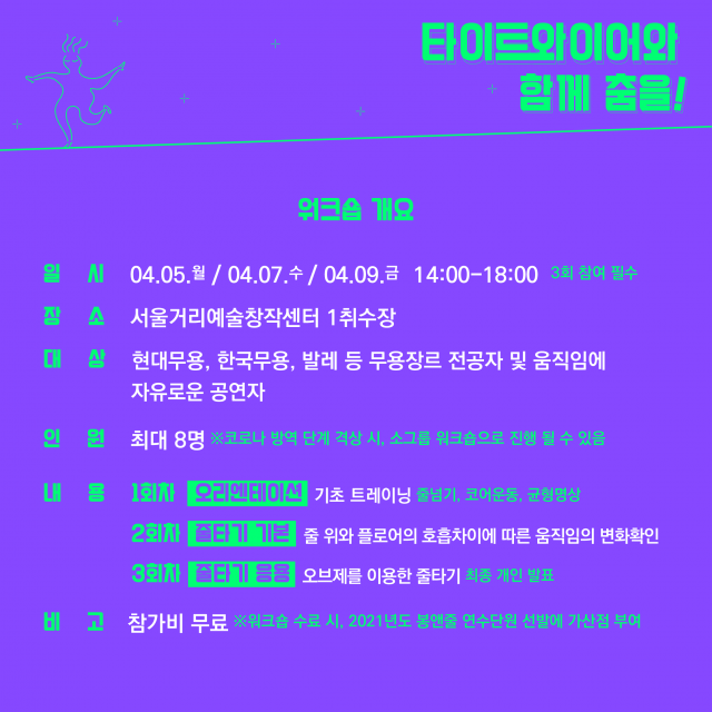 • [워크숍] 타이트와이어와 함께 춤을! / 움직임에 관심있는 분, 무용전공자에게 추천!