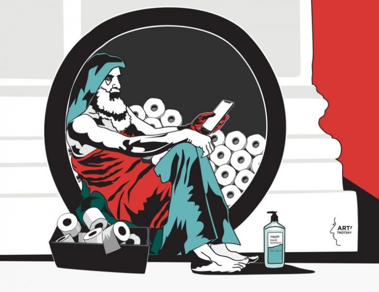 The exhibition will represent several illustrations created by artist for British newspapers in 2020, her attempts to rethink “New Normality” through the prism of myths, biblical histories and classical paintings. The collection will be shown for the first time and opens a series of pandemic exhibitions by Masha Trotzky in Sweden, Germany and Montenegro.