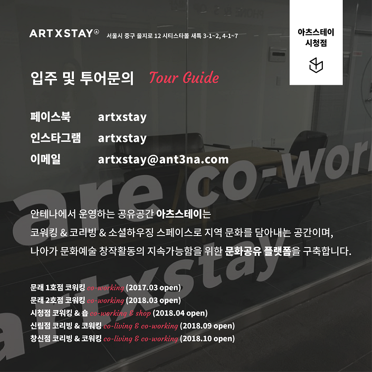 (운영 및 모집 중) 문래 1호점 / 문래 2호점 / 시청점 - 개인 및 공동작업공간, 전시/교육 지원 등