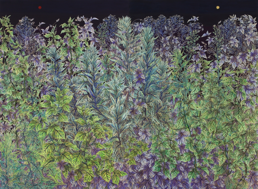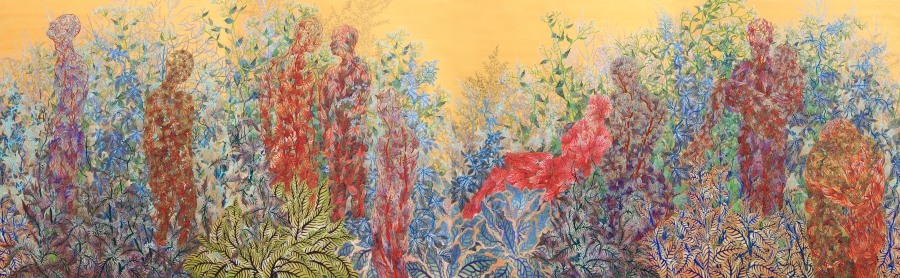 성민우, 오이코스_관계의 생태 162.2㎝×524㎝ 비단에 채색과 금분 2016