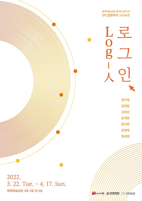 팔복예술공장 창작스튜디오 5기 입주작가 프리뷰전 <로그인 Log-人>은팔복예술공장 창작스튜디오에 새롭게 입주한 7인 작가의 작업을 소개하는 첫 기획전이다. 작가가 이전에 창작한 대표작품을 선보이며 개인 고유의 방식으로 의미를 부여하고 앞으로의 작업 경향과 나아갈 방향에 집중 조명한다.