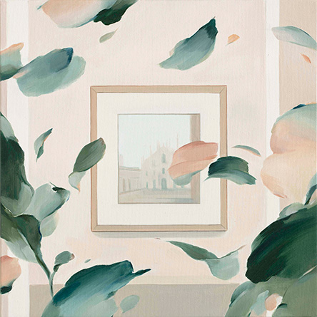수면 위 풍경을 보며 사색에 잠겼던 나의 기억들은 추상적으로 형상화되고, 물결과도 같은 의식의 흐름을 따라 흐르듯 떠돌며 시간과 공간은 서로 얽히고 덧씌워진다. 그와 같은 기억 속 이미지들을 연결고리로 삼아 과거와 현재의 연속성을 공간과 자연 이미지의 조화로 표현하며 현실 속 공간에 덧입힌 내면의 추상적인 세계를 새로운 풍경화로 재구성하였다. 현재의 시공간을 벗어나 유토피아적 풍경을 배경으로, 끊임없이 흐르는 시간이자 사색의 연결고리인 수면 위에 비친 식물의 이미지로 상징되는 ‘연상의 조각들’은 물결과 같은 의식의 흐름을 따라 흐르듯 부유한다. 내가 작품을 통해 모색하는 사색과 위안의 소중한 순간들이 거기에 있다.