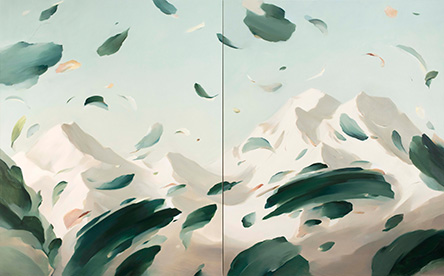 작품 속 공간들은 그 자체로 완전한 실재의 구현이 아니라 주관적 시선으로 변형된 결과물이다. 수면 위에 투영된 자연 요소들은 반추상적 풍경화 속에 압축된 추상적 이미지로 표현하였고 왜곡된 식물 이미지로 암시된 자연의 기억은 일종의 매개체로서 과거와 현재, 내면과 외부세계를 연결하는 연결고리로 작용한다. 이 같은 매개체들은 설산이 가진 순수성, 이상향 또는 이상을 향한 의식의 통로와 같은 구조의 공간에서 시작되어 추상적 표현으로 시각화 되는 과정을 거친다.