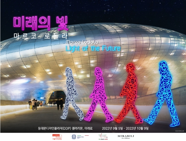 DDP 협력전시 그 두 번째, 비틀즈와 파바로티. 모나리자와 다비드. 화려하게 빛나는 네온 무희와 일렉트릭 오케스트라. 과거와 현대를 넘나드는 시대의 아이콘을 미래적인 시각으로 재해석한 마르코 로돌라의 작품 세계를 알리는 <미래의 빛 마르코 로돌라>가 DDP 미래로와 갤러리문에서 개최됩니다. 이번 전시회에서는 이탈리아 네오 퓨처리즘의 창시자로 알려진 마르코 로돌라의 작품 약 40점이 공개됩니다. 앤디 워홀의 캠벨 수프를 유머러스하게 재해석한 로돌라의 파베제 수프, 이탈리안 라이프 스타일의 상장인 베스파 스쿠터 등 로돌라는 현대 문화의 아이콘, 로고와 같이 가장 기본적인 요소들로 구성되지만, 직관적으로 알아볼 수 있는 대상을 오브제화 한 작품으로 즐거움을 줍니다. 이번 전시회는 주한 이탈리아 대사관, 주한 이탈리아 문화원, 서울디자인재단이 주최했으며, ‘절대적인 예술품과 일상적인 인테리어 제품’의 특성을 겸비한 오브제의 전시를 주거 공간으로 확장하는 것을 추구하는 ‘미라빌리’사가 후원했습니다.