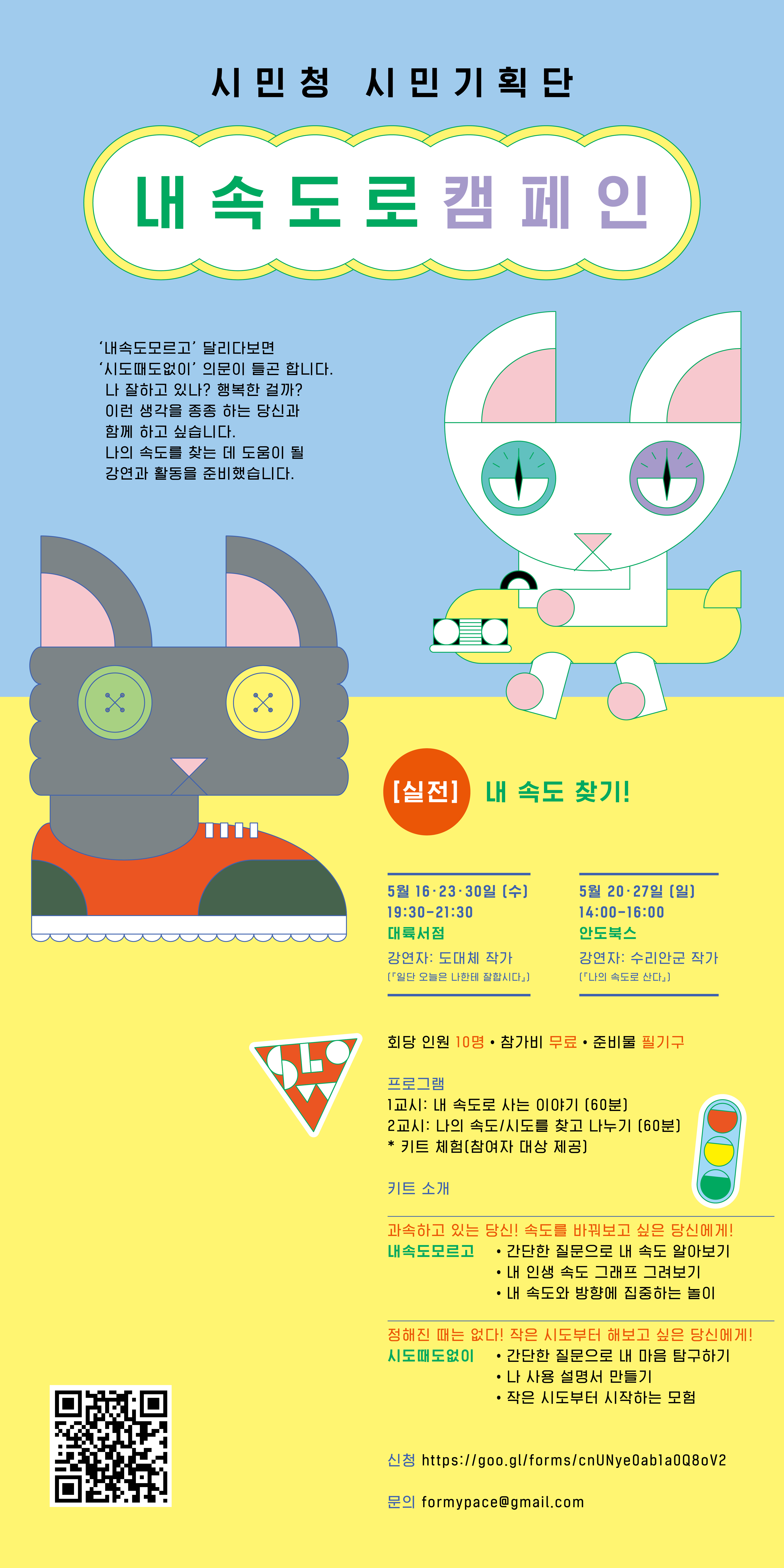 스스로의 삶의 가치와 방향을 생각해보고 각자의 속도에 맞춰 살아가기 위한 '내 속도로 캠페인' 워크샵에 초대합니다.