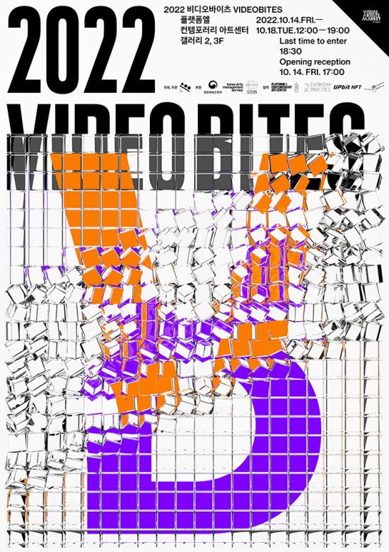 <비디오바이츠 VIDEO BITES>는 영상 미디어 작품의 전시화 소비 활성화를 모색하기 위한 전시 프로젝트로, 데이터 볼륨의 기본 단위인 'bytes'와 "한 입"이라는 뜻의 'bites'간 동음이의를 통해 영상 미디어 전시 프로젝트로서의 정체성과 비전을 직관적이고 유쾌하게 상징합니다.