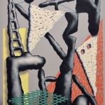 There is a strong element of process in the virtuosi work of Lee Marshall. What start as sketches become collage studies, and in turn these become paintings, each individual element given an enormous amount of deliberation. As much time is spent reflecting on the work as actually painting the work: Marshall considers carefully what exactly he wants to paint, and what the piece’s final destination will be before embarking on its creation. He is not painting a depiction of something that exists physically, but building something, drawing on a range of shapes and elements to create an ensemble of motifs. For him, the picture plane is a playful space to populate, albeit one that is carefully thought through before being created. The idea of taking elements and combining them in a virtual or dream space has always fascinated him, transcending the time-honoured idea of the canvas as a “window to another space”, to the space between the painting plane and the digital screen.